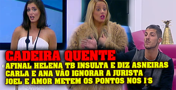 A Cadeira Quente após a Gala de expulsão do Bruno e das votações "esquesitas" do Grupo dos ex-concorrentes foi leve mas com alguns momentos de bocas e relações cortadas. Carla e Ana aproveitaram para dizer que não querem mais ser associadas à Helena e justificaram os seus motivos.